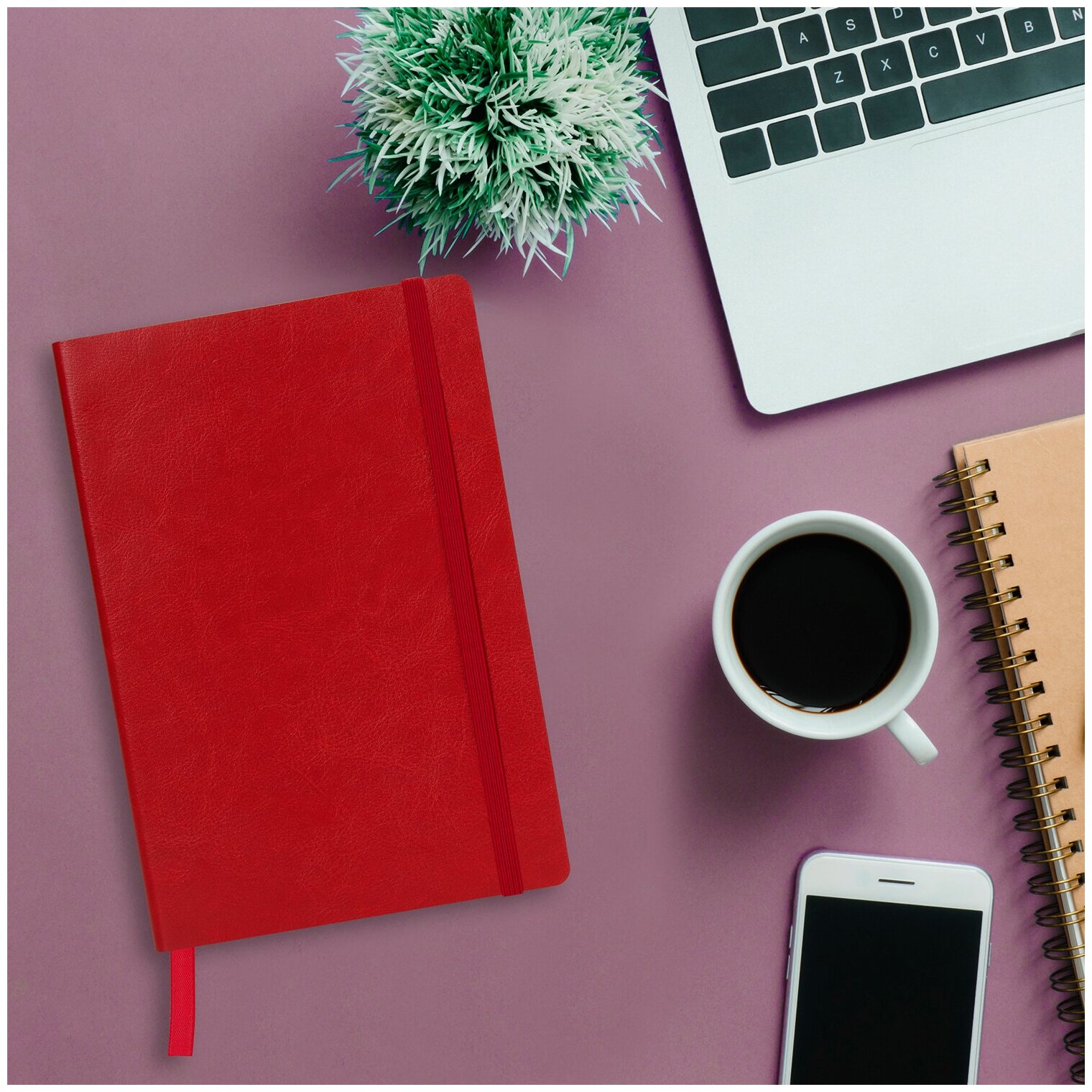Блокнот в клетку с резинкой А5, 148x218 мм, 80 л, под кожу, красный, BRAUBERG Metropolis Ultra, 111018