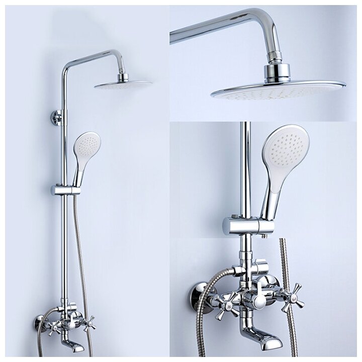 - ручной душ (душевая лейка) / верхний душ (тропический) / смеситель / душевой шланг / крепление ручного душа / настенный кронштейн