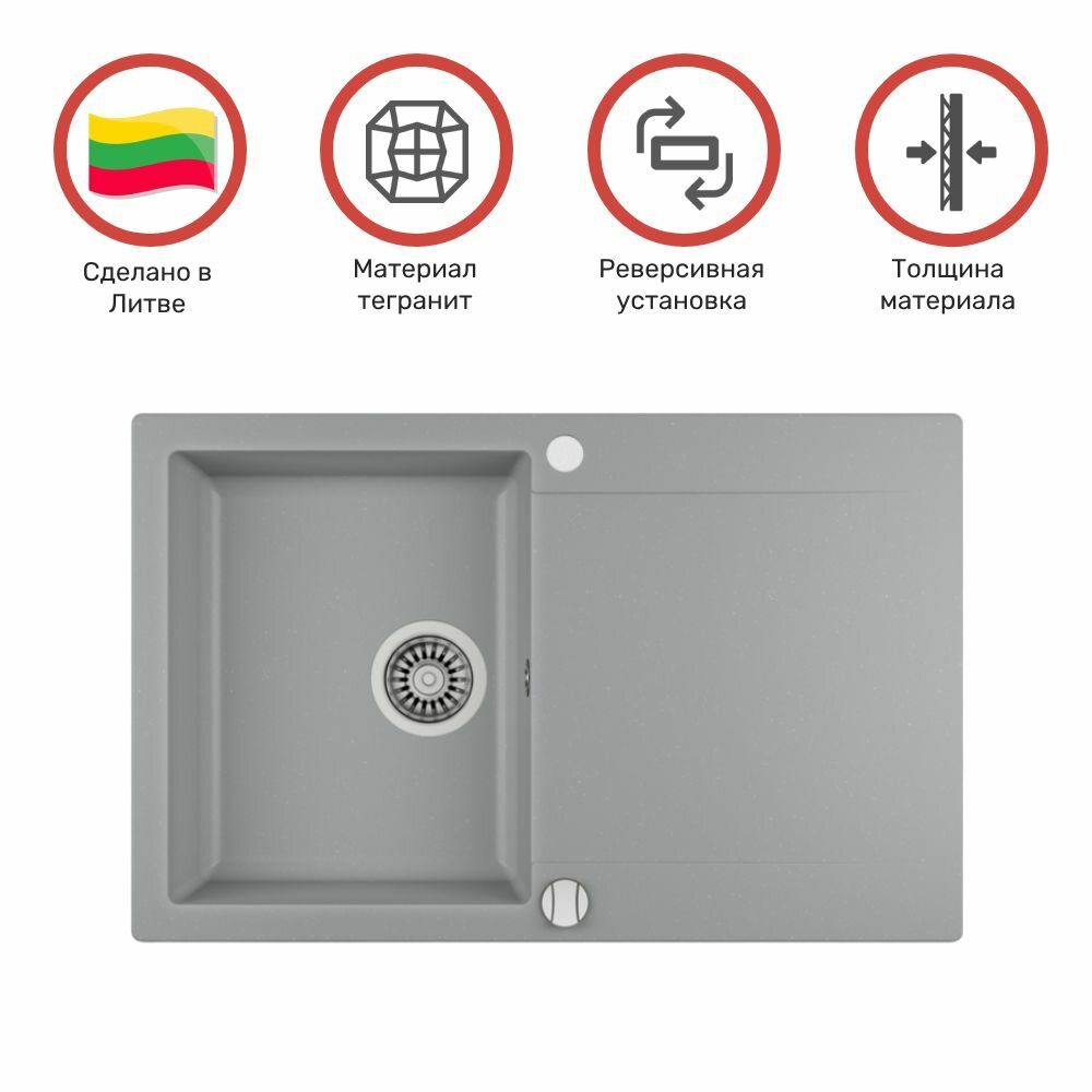 TEKA Кухонная мойка Teka CLIVO 45 B-TQ 1B 1D ALUGRAUMETALLIC
