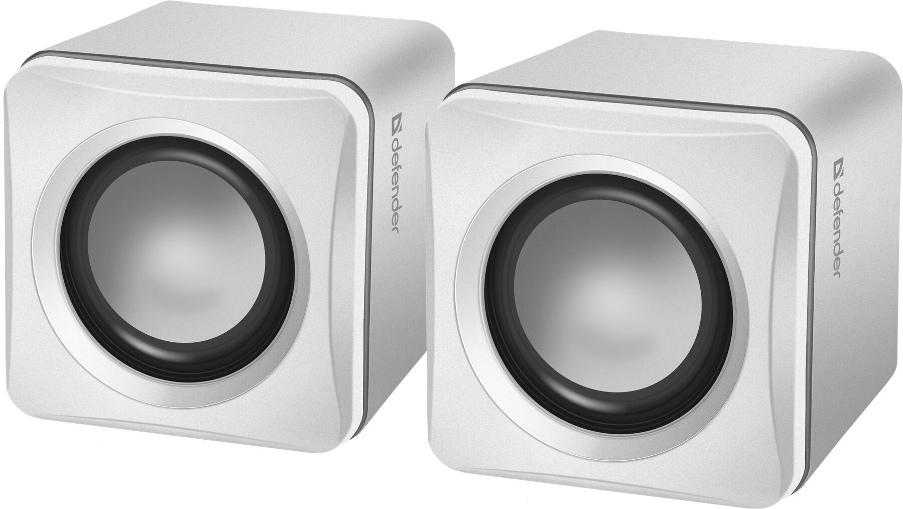 Активная система DEFENDER 2.0, SPK-33, USB, белый. Суммарная выходная мощность (RMS) 5 Вт. Мощность сателлитов (RMS) 2.5 Вт. Размер динамика сателлита 45 мм. Диапазон частот 100–20000 Гц. Тип интерфейса 3,5-мм джек. Материал корпуса: пластик.