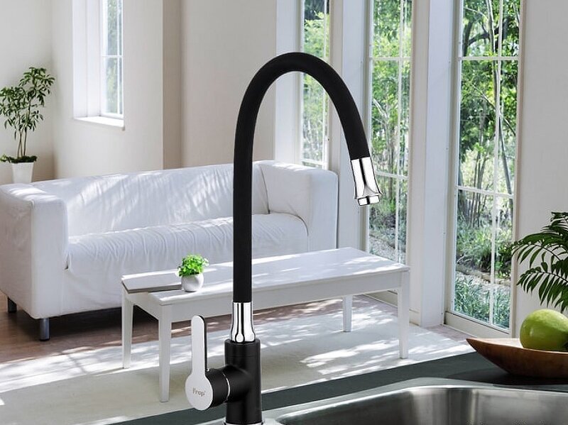 Смеситель для кухни Frap F4042, гибкий излив, однорычажный, черный/хром