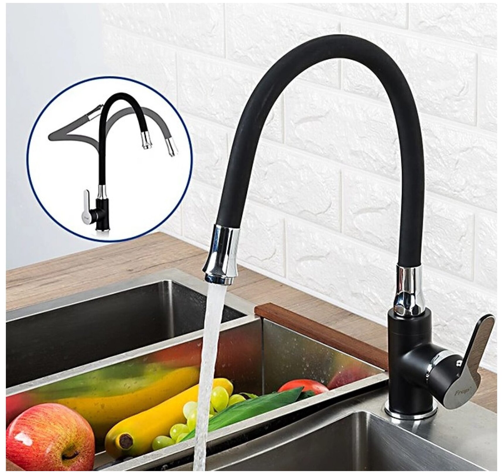 Смеситель для кухни с гибким изливом Frap F4042 Черный,хром
