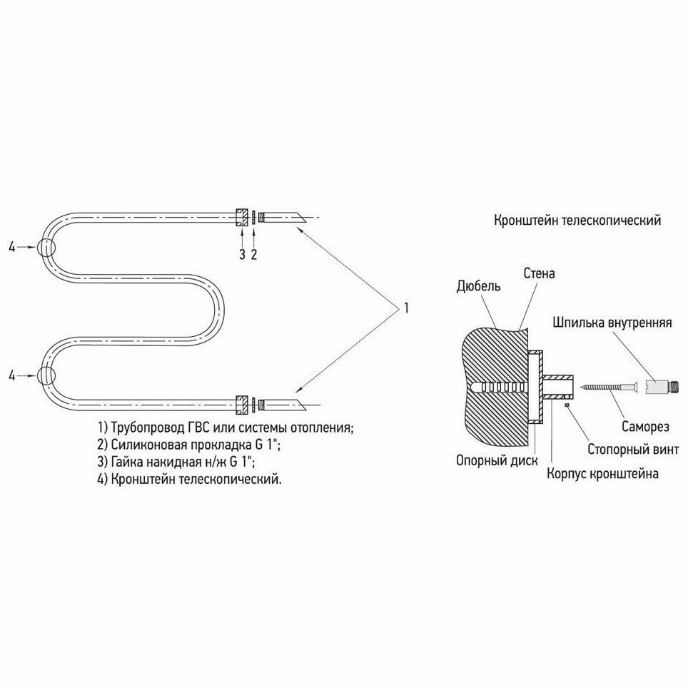 Водяной полотенцесушитель Сунержа М-образный+ 500х500 без покрытия