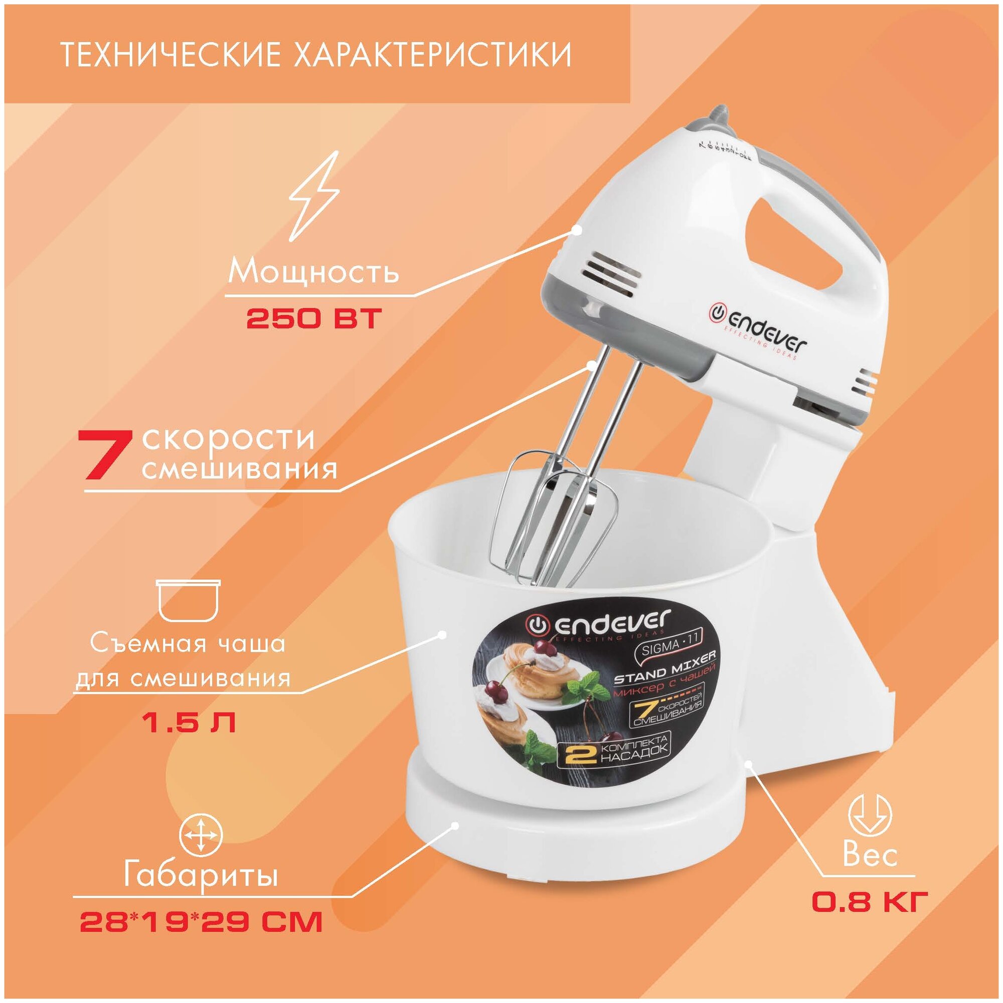 Миксер Endever SIGMA-11, с чашей, белый [80359]