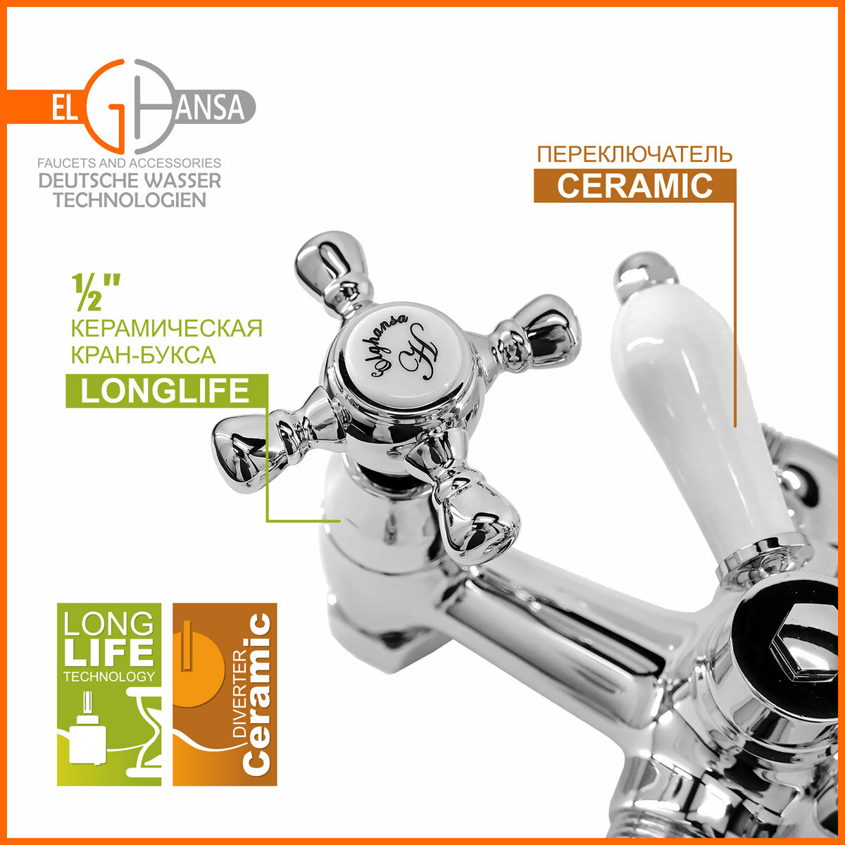Elghansa Смеситель ELGHANSA 2730063 для ванны двухручковый с душевым комплектом смеситель в Курчатов