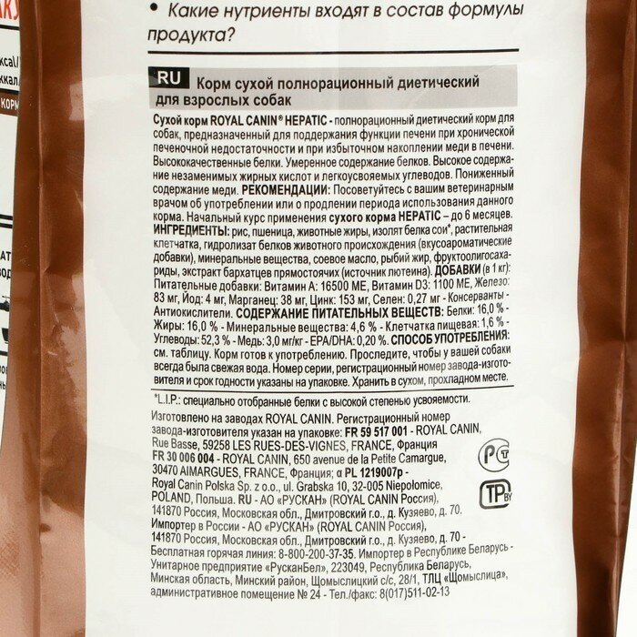 Сухой корм ROYAL CANIN 1,5кг Hepatic HF16 для любых собак при заболеваниях печени и пироплазмозе