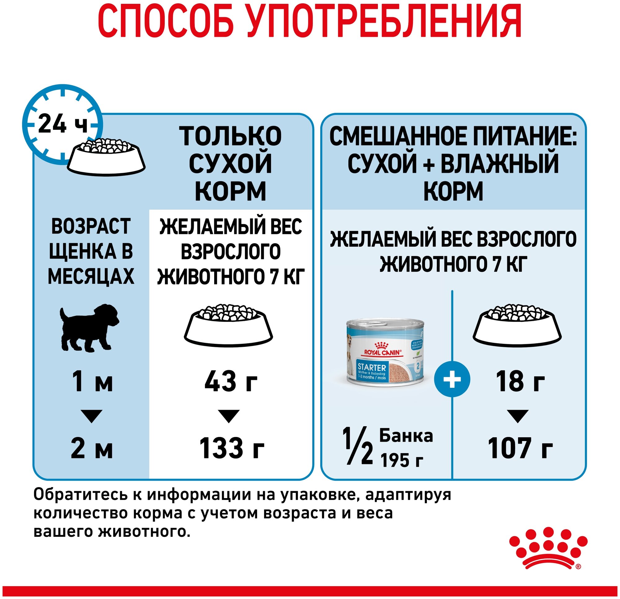 ROYAL CANIN MINI STARTER для щенков маленьких пород до 2 месяцев, беременных и кормящих сук (3 + 3 кг)