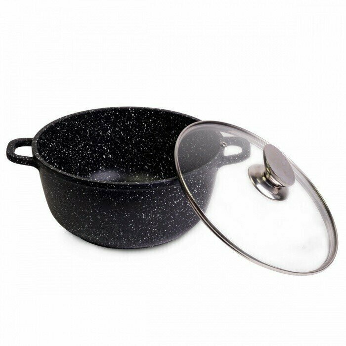 Кастрюля 24*11,5 см 4,5л. из литого алюминия с антипригарным покрытием "чёрный мрамор" и стеклянной крышкой