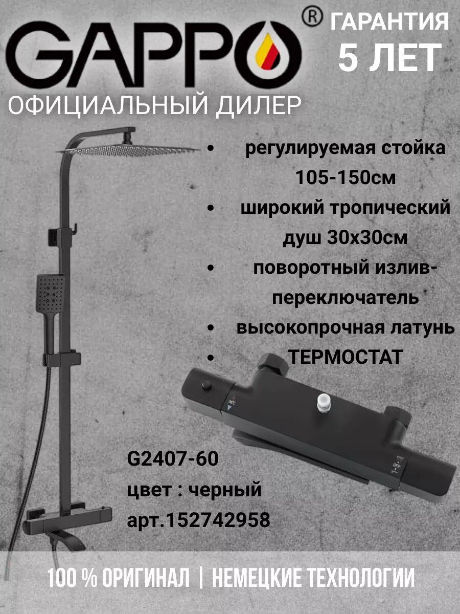 GappoДушевая стойка смеситель для душа Душевая система с термостатом G2407-60, черный