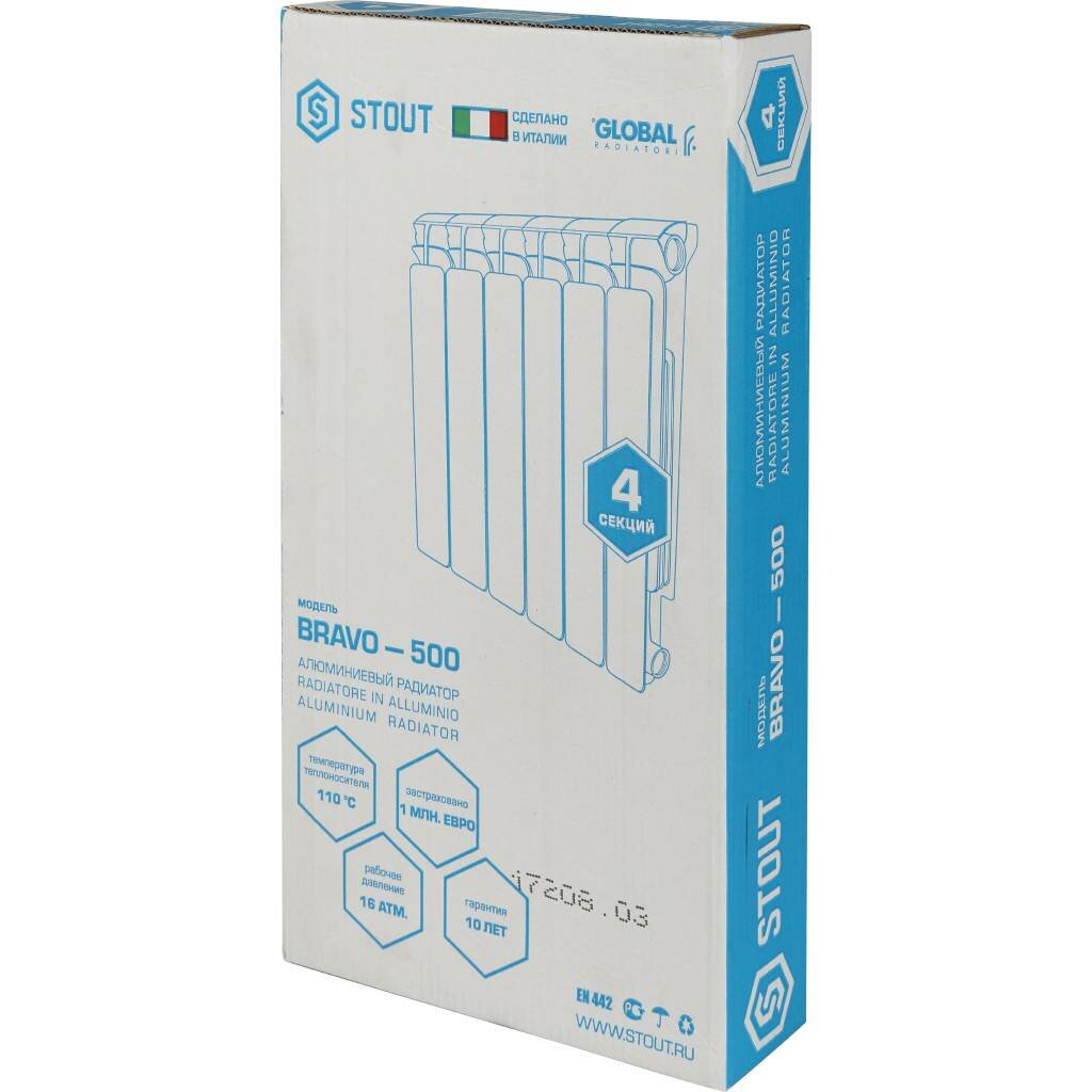 Радиатор алюминиевый Bravo 500 4 секций Stout (SRA-0110-050004)