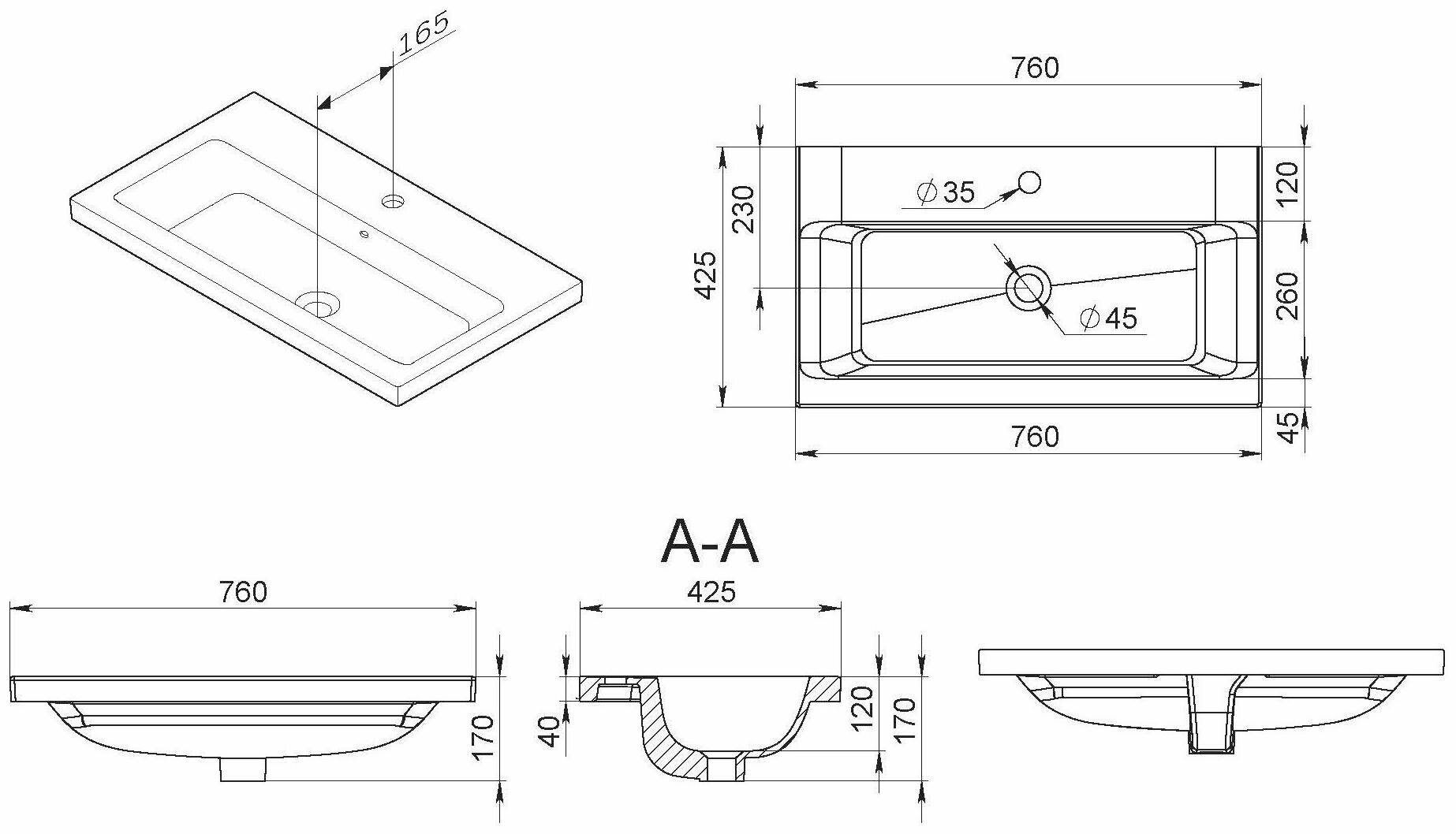 Раковина AM.PM Gem мебельная, керамика (760х425х40) цвет: белый глянец M90WCC0752WG