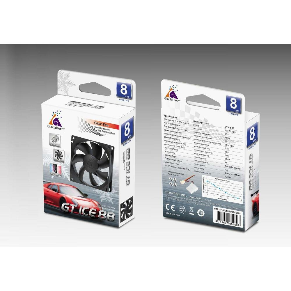 Вентилятор Glacialtech GT ICE 8B BallBearing 80x80x25 mm 3-pin 4-pin (Molex)21dB 68gr Ret