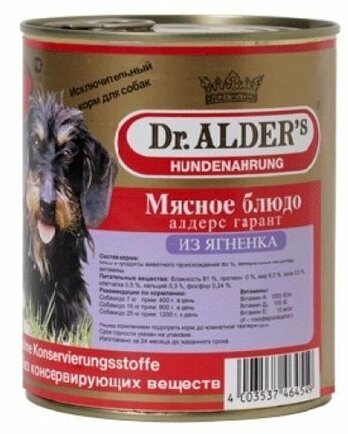 Доктор Алдерс Консервы для собак Ягненок (6453)18371 0,4 кг 19110 (10 шт)