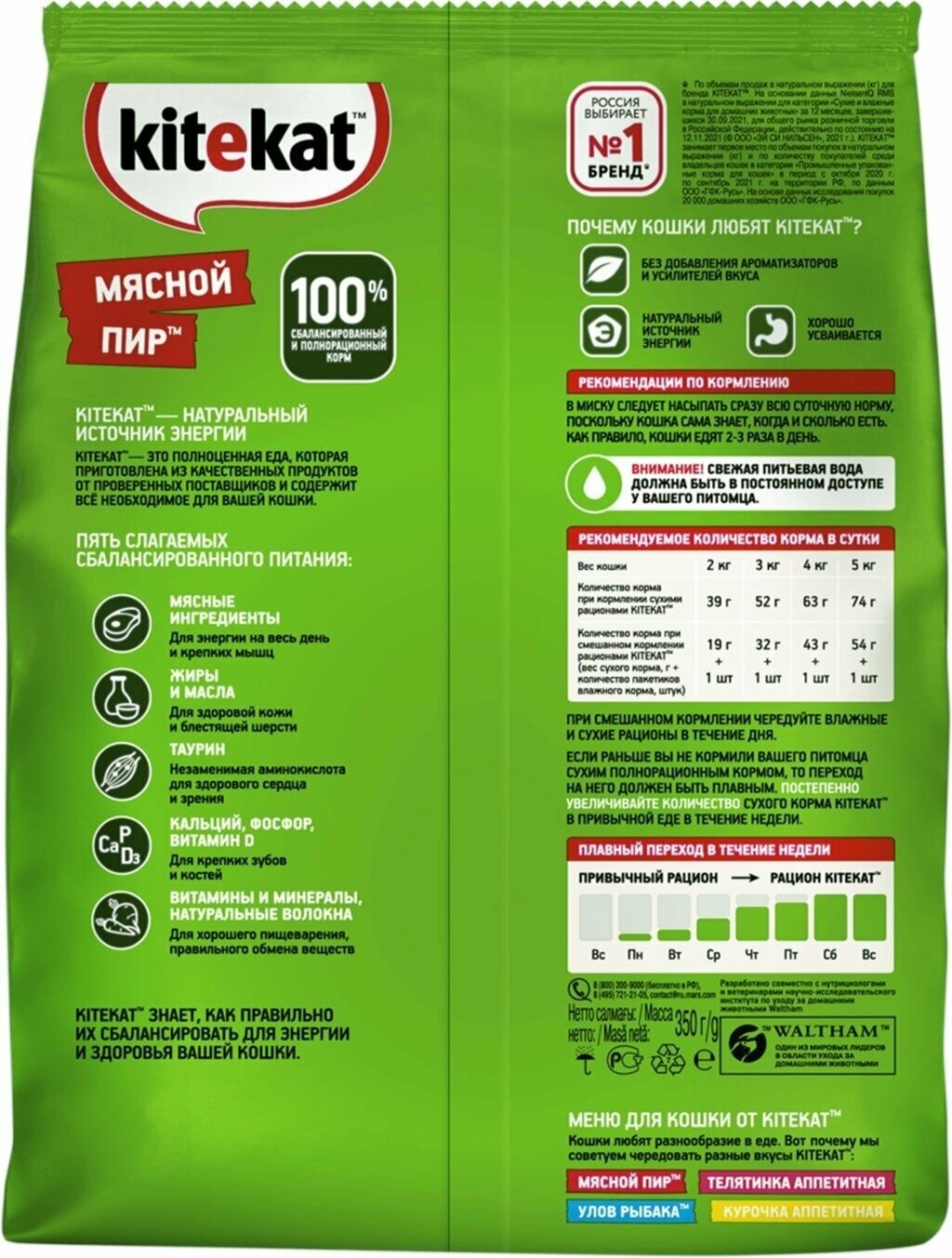 Kitekat Корм сухой для кошек KITEKAT Мясной пир, 350 г - 10 шт. корм для кошек в Курчатов
