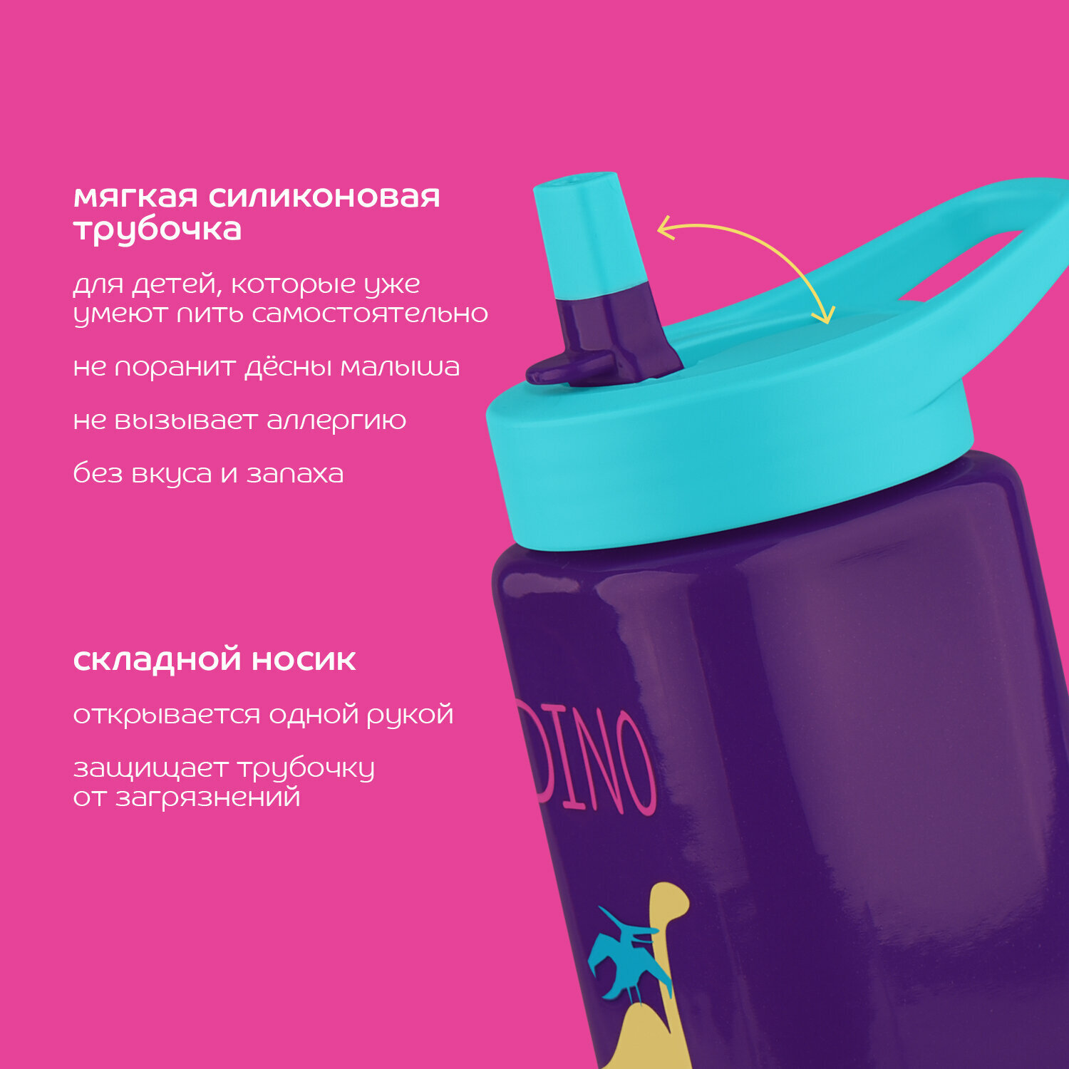 Lubby Lubby Поильник- непроливайка Dinо со складным носиком и трубочкой 450мл 9+ бутылочки (поилки) в Курчатов