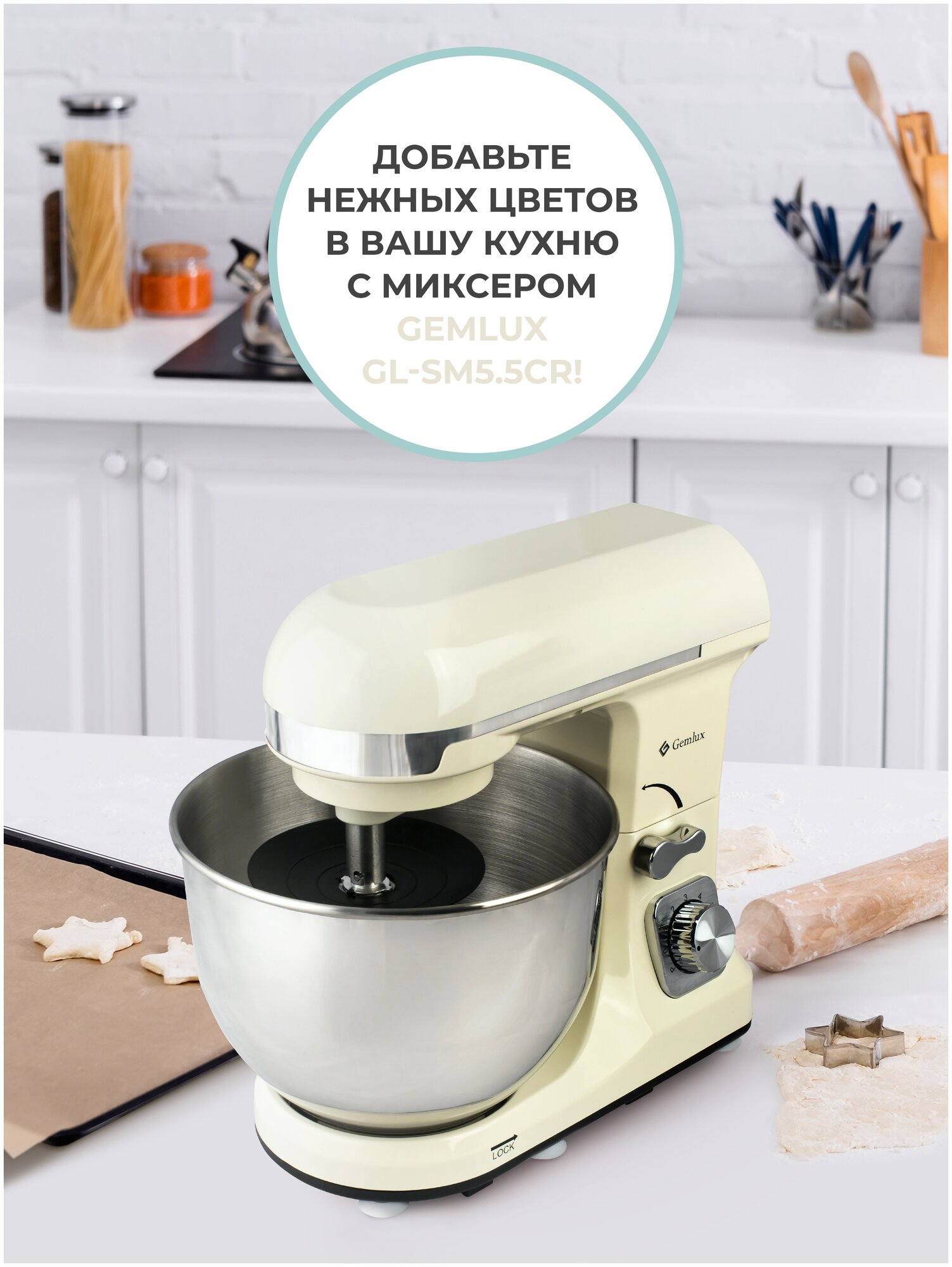 Gemlux Планетарный миксер GEMLUX GL-SM5.5 Кремовый кухонный комбайн в Курчатов