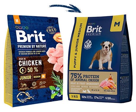 Brit Premium Dog Puppy and Junior Medium 2шт по 3кг курица сухой для щенков и молодых собак