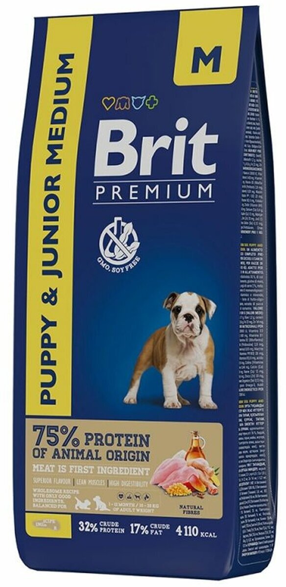Сухой корм BRIT PREMIUM DOG PUPPY & JUNIOR MEDIUM для щенков и молодых собак средних пород с курицей (8 кг)