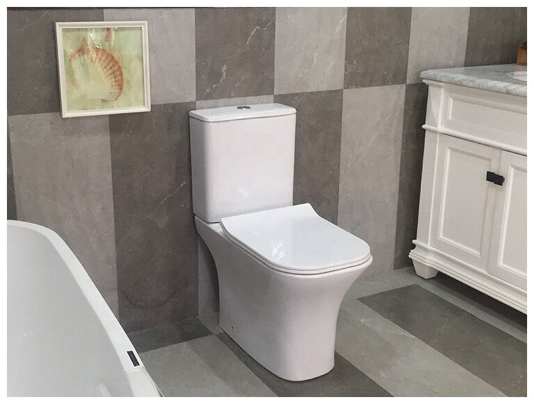 Унитаз напольный Vettore с бачком 1215A (665*345*770) безободковый, крышка дюропласт с микролифтом,