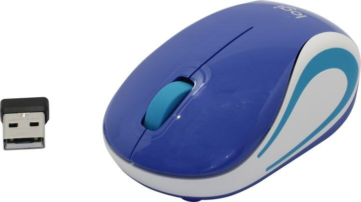 Мышь Logitech M187, оптическая, беспроводная, USB, голубой и белый [910-002733]