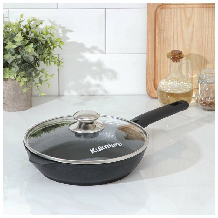 Сковорода KUKMARA литая 22 см со съёмной ручкой и стеклянной крышкой