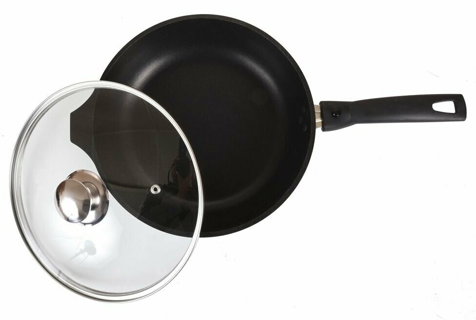 Сковорода алюминиевая литая с апп d26 со Стеклянной крышкой, Сьемн.руч., h=6 С266а