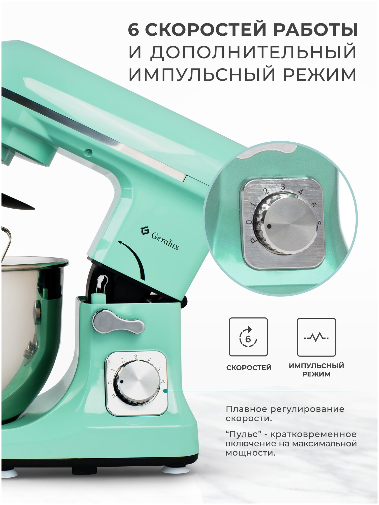 Планетарный миксер GEMLUX GL-SM5.5 Тиффани (мятный)