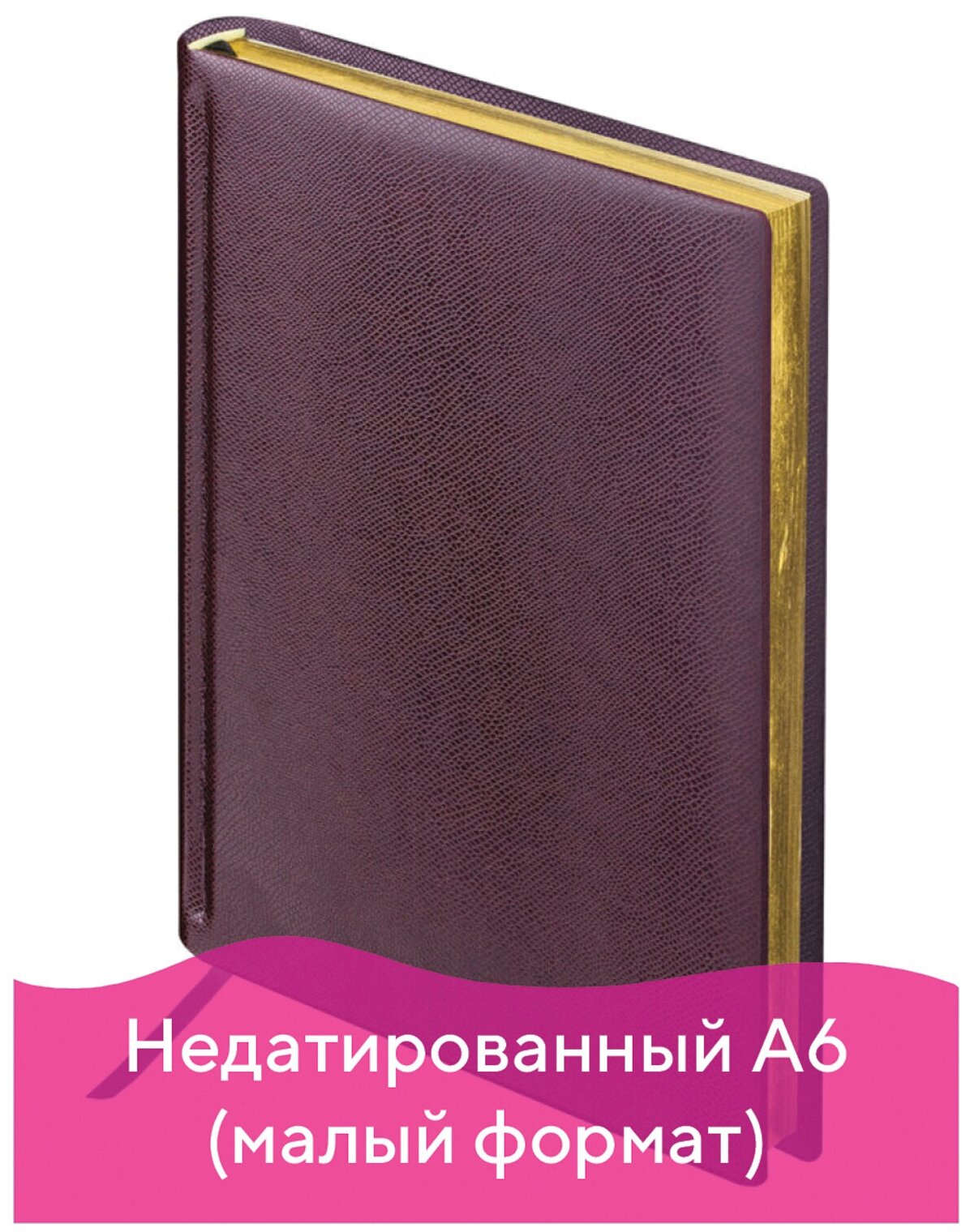 Ежедневник недатированный Brauberg малый, 100x150 мм, а6 iguana под кожу, 160 л, красный (114468)