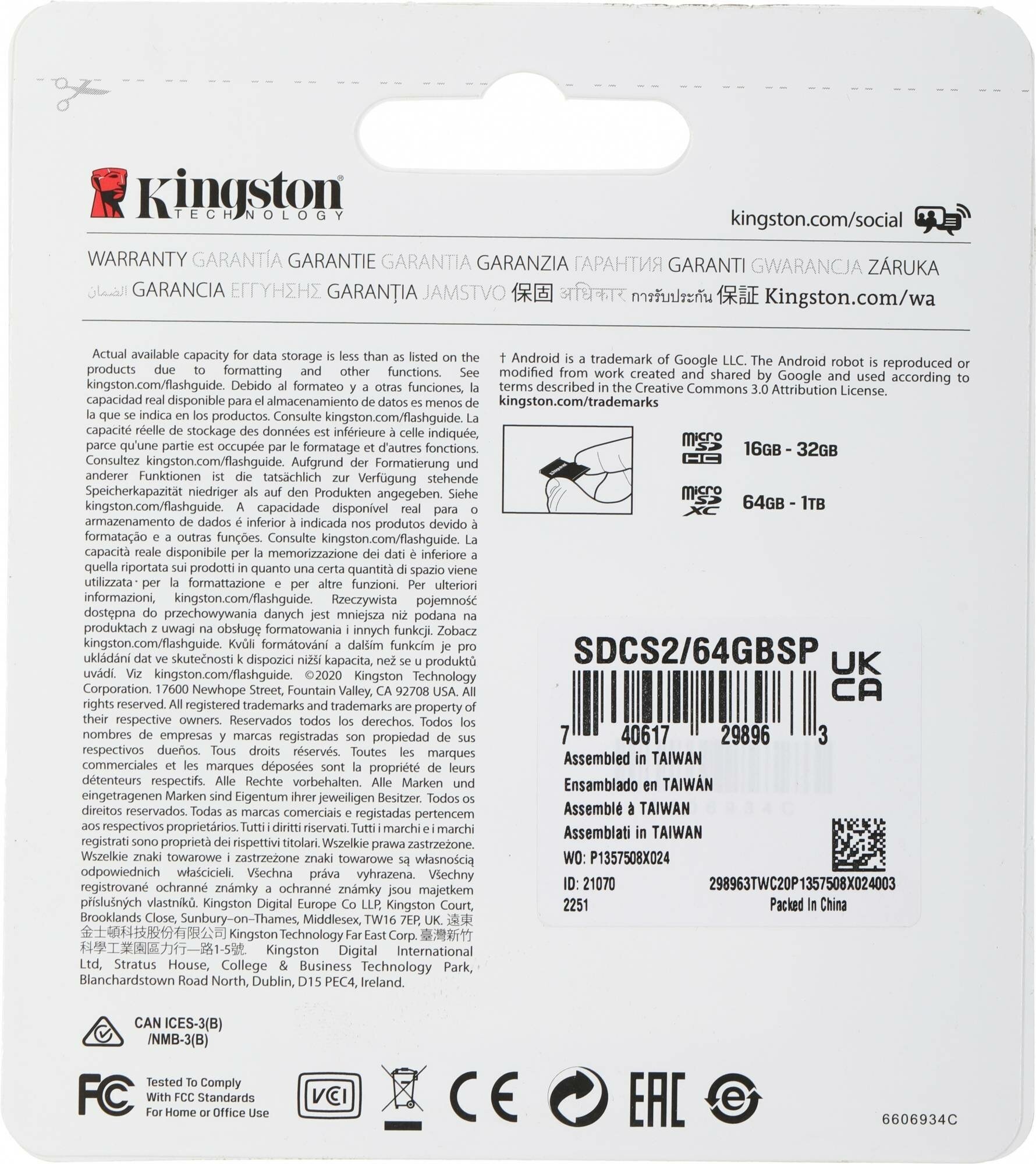 Kingston Micro SecureDigital 64Gb SDCS2 64GB