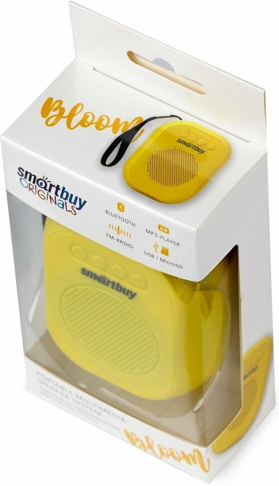 Портативная колонка Smartbuy BLOOM, 3Вт, Bluetooth, MP3, FM-радио, желтая (SBS-170)