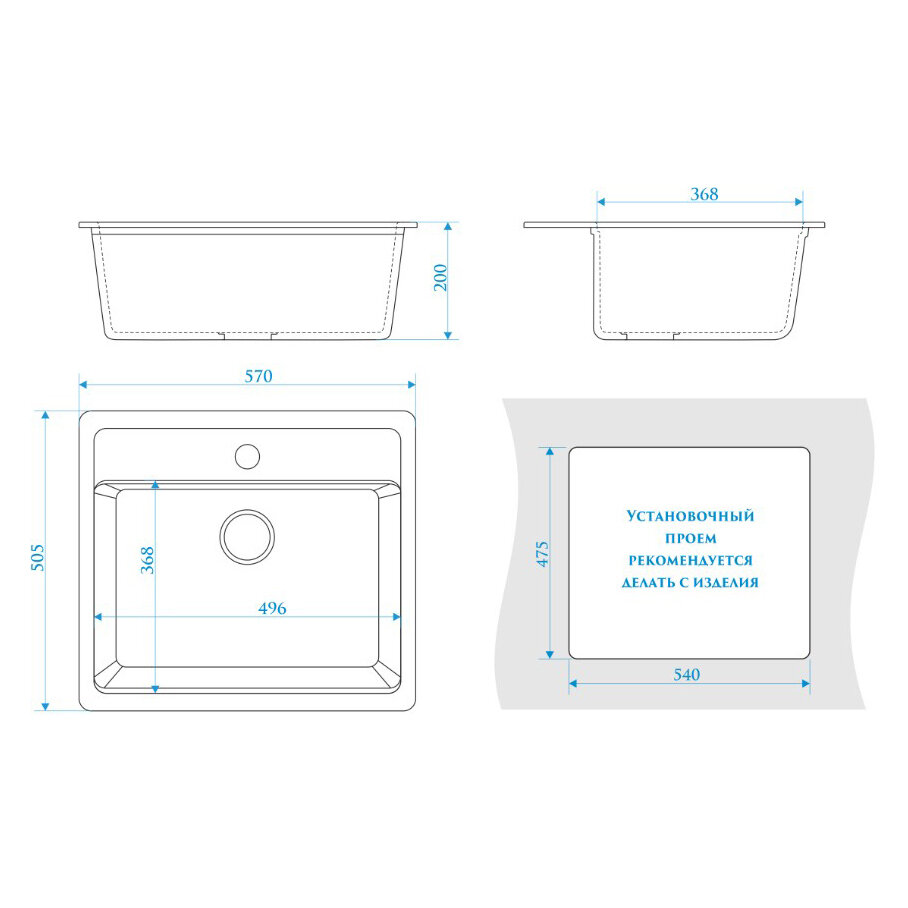 - Размеры врезного отверстия (под столешницу)