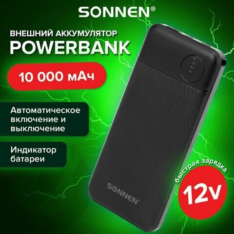 2E Аккумулятор внешний 10000 mAh SONNEN POWERBANK K701PD быстрая зарядка, 2USB, литий- полимер, 263031 powerbank в Курчатов