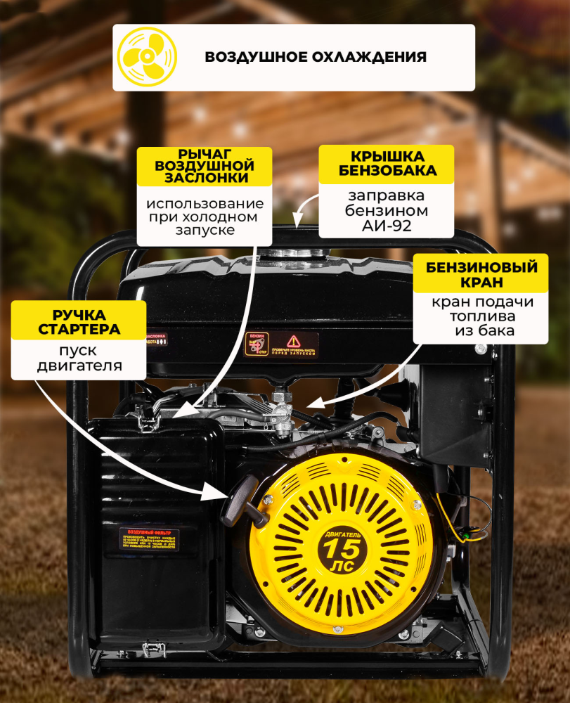Бензиновый генератор Huter DY8000L, 220 В, 6.3кВт [64/1/33]