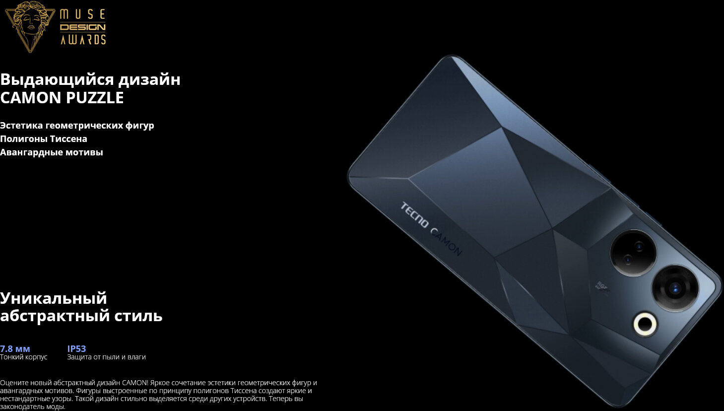 Смартфон TECNO Camon 20 8/256Gb Predawn Black (ростест)