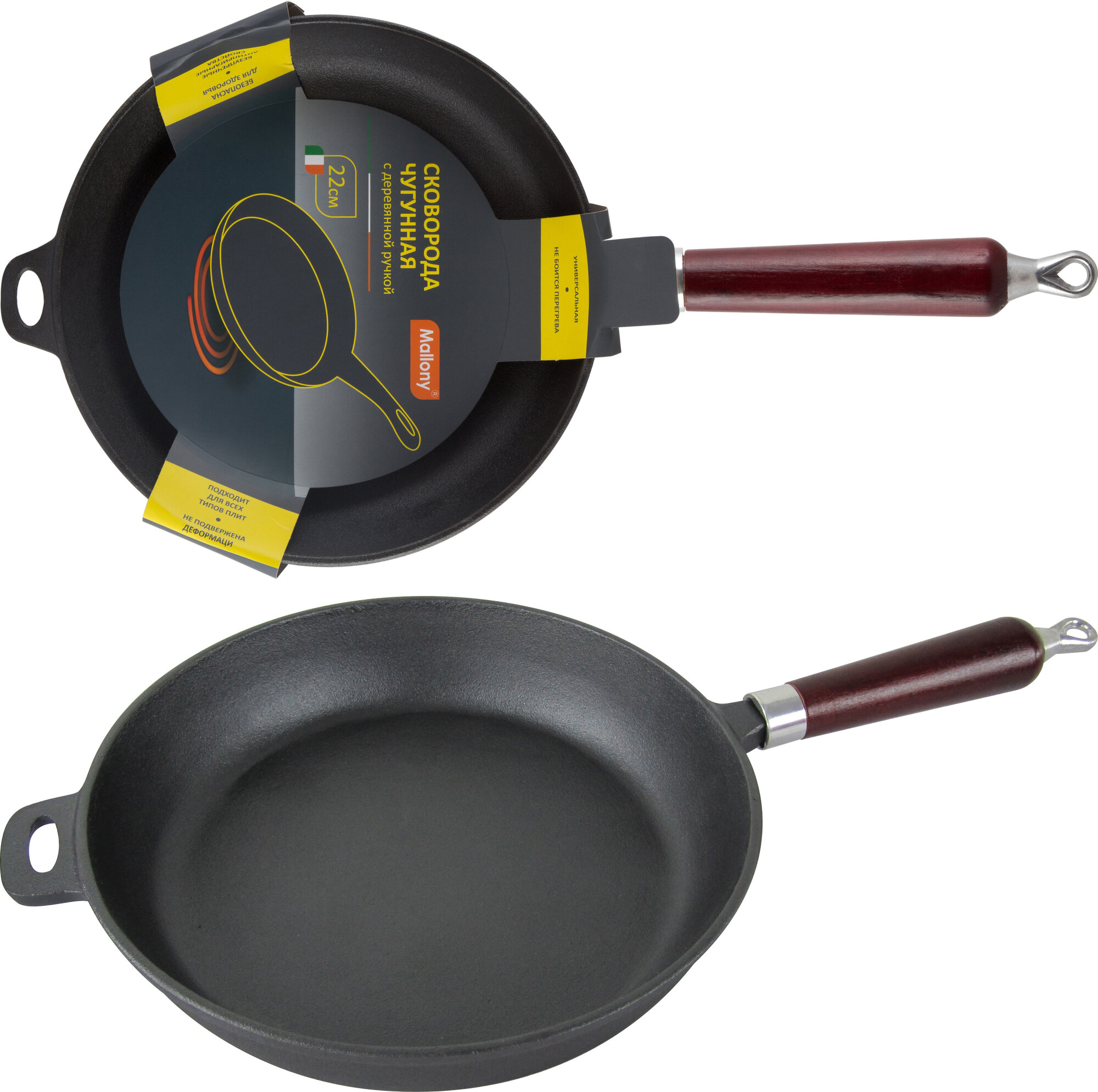 Сковорода Mallony чугунная 22 см, деревянная ручка