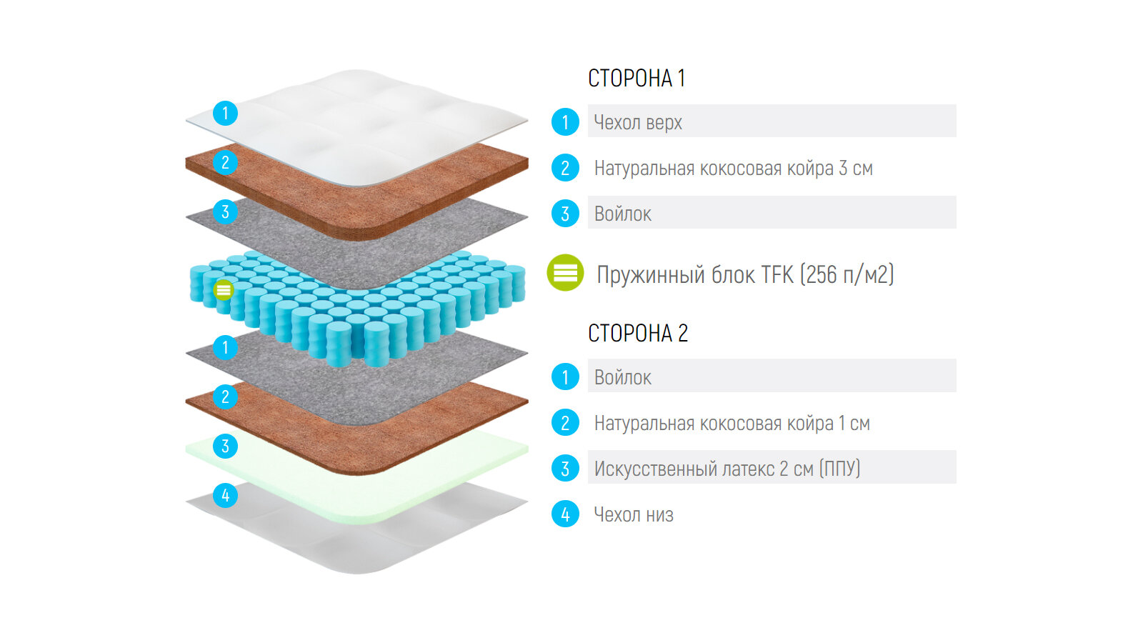 Россия Матрас Lonax Cocos Medium Econom TFK 5 Zone 75x160