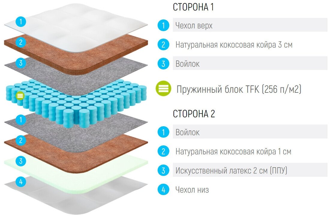 Матрас Lonax Cocos Medium Econom TFK 5 Zone 95x185