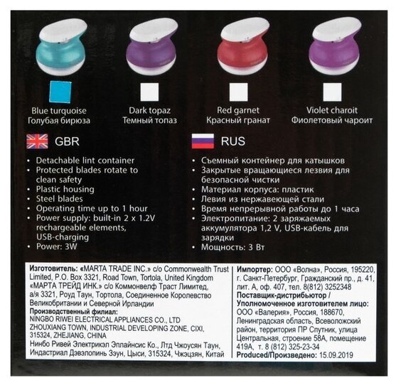 Marta MT-2233 Машинка для удаления катышков фиолетовый чароит .