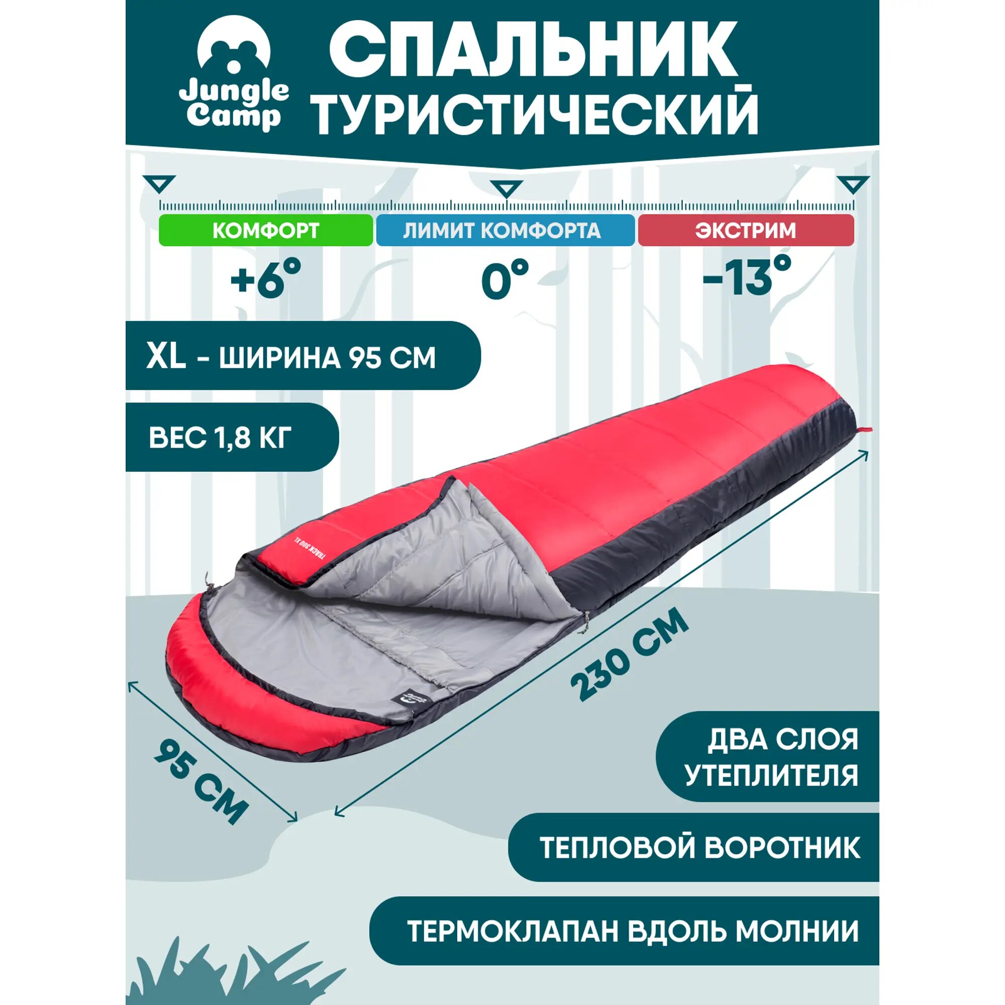 Jungle Camp Спальный мешок Jungle Camp Track 300 XL, широкий, трехсезонный, левая молния, цвет:серый, красный спальный мешок в Курчатов