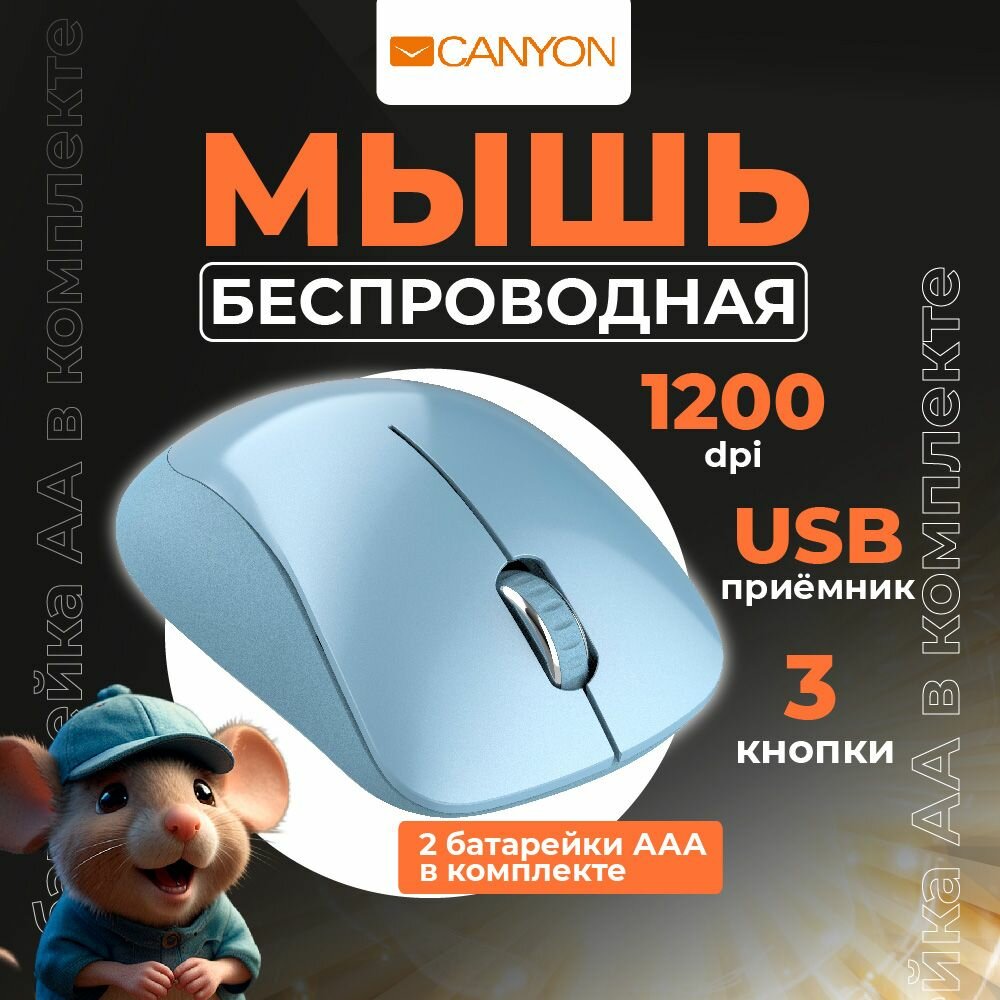 Мышь CANYON MW-11, беспроводная, оптическая, 1200 dpi, USB, 2xAAА, синяя