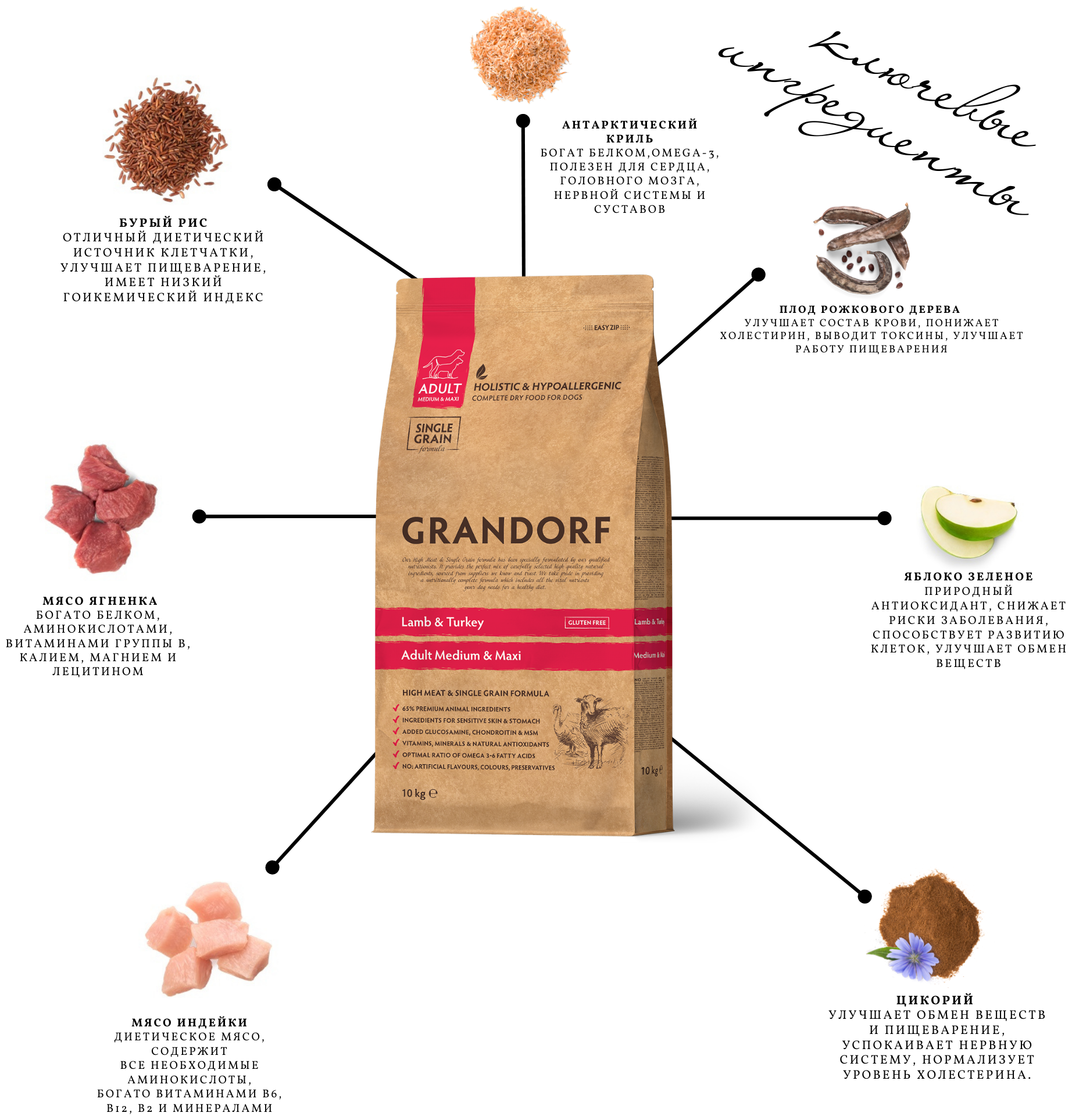 Rafi Grandorf Сухой корм Grandorf для собак средних пород, ягненок/индейка, низкозерновой, 10 кг корм для собак в Курчатов