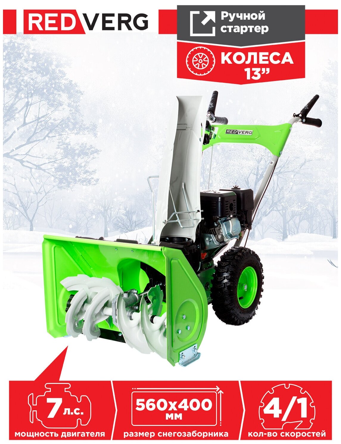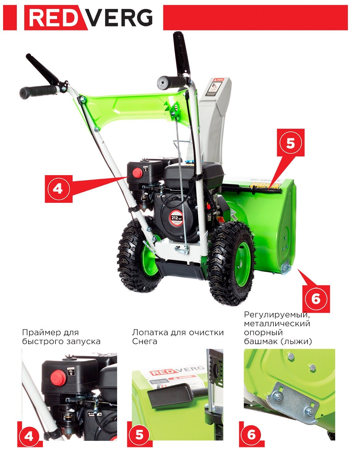 Снегоуборщик REDVERG (Бензиновый, 7 л.с. RD-SB56/7)