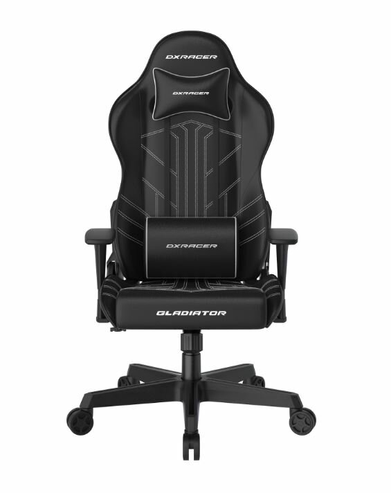 Компьютерное кресло DXRacer OH/G8000/WN для геймеров, обивка PU-кожа, макс. нагрузка 115 кг, подушки под голову и поясницу черный
