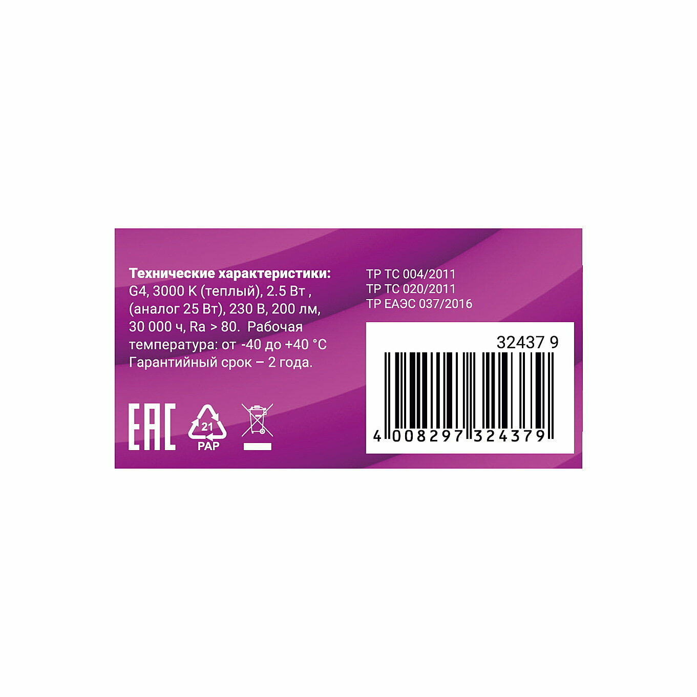 Упаковка ламп LED REV G4, капсульная, 2.5Вт, 10 шт. [32437 9]