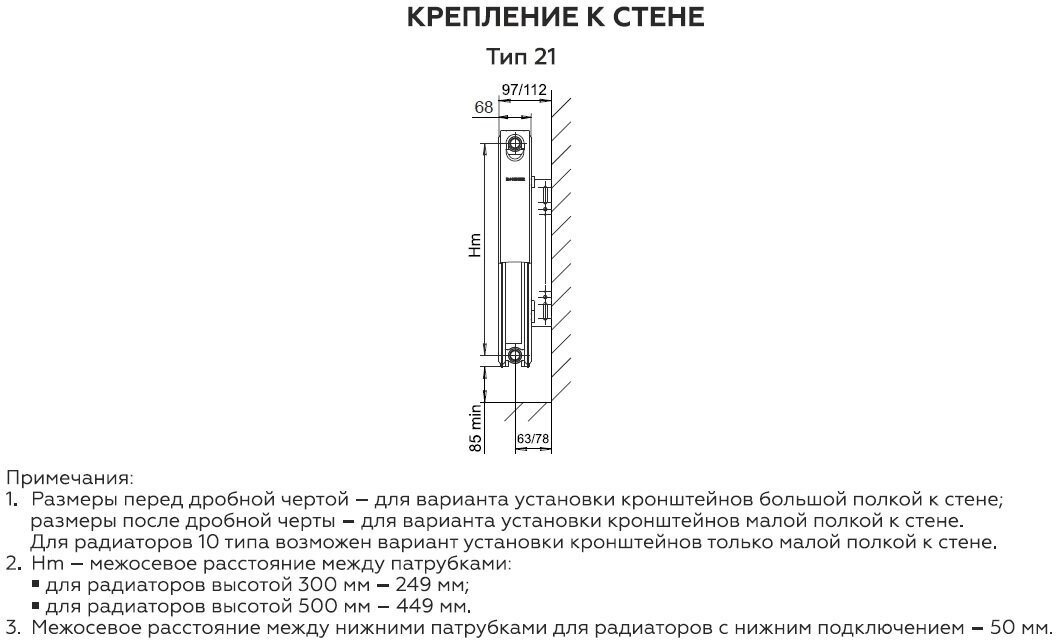 Панельный радиатор 21/300/500 нижн. прав. подключ. Ventil (Rommer) арт. RRS-2020-213050