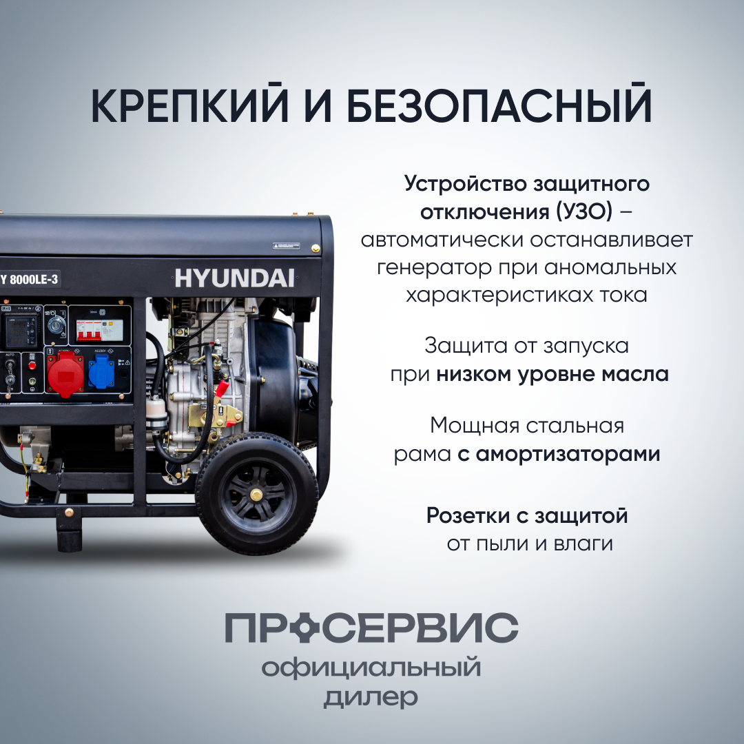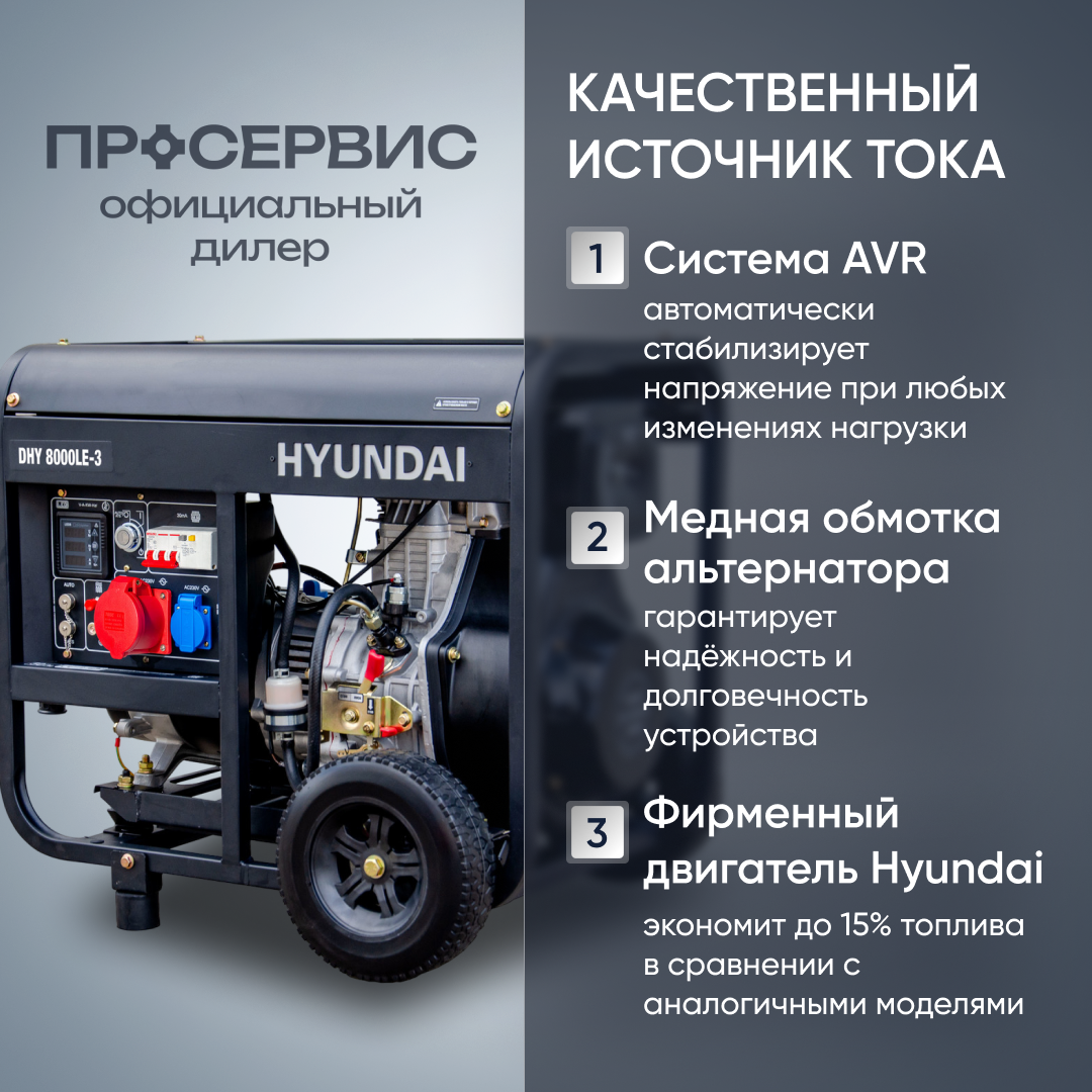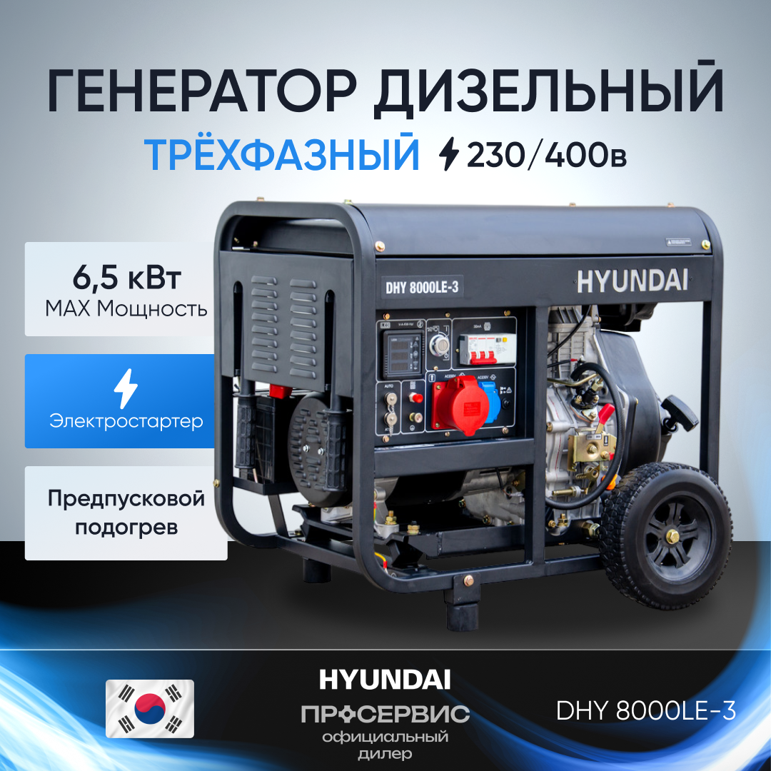 Дизельный генератор Hyundai DHY-8000 LE-3, (6000 Вт)