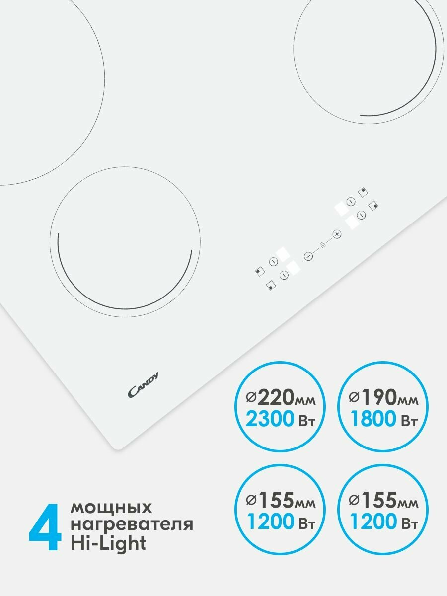 Электрическая стеклокерамическая варочная панель Candy CH64CCW, 60 см, с блокировкой управления