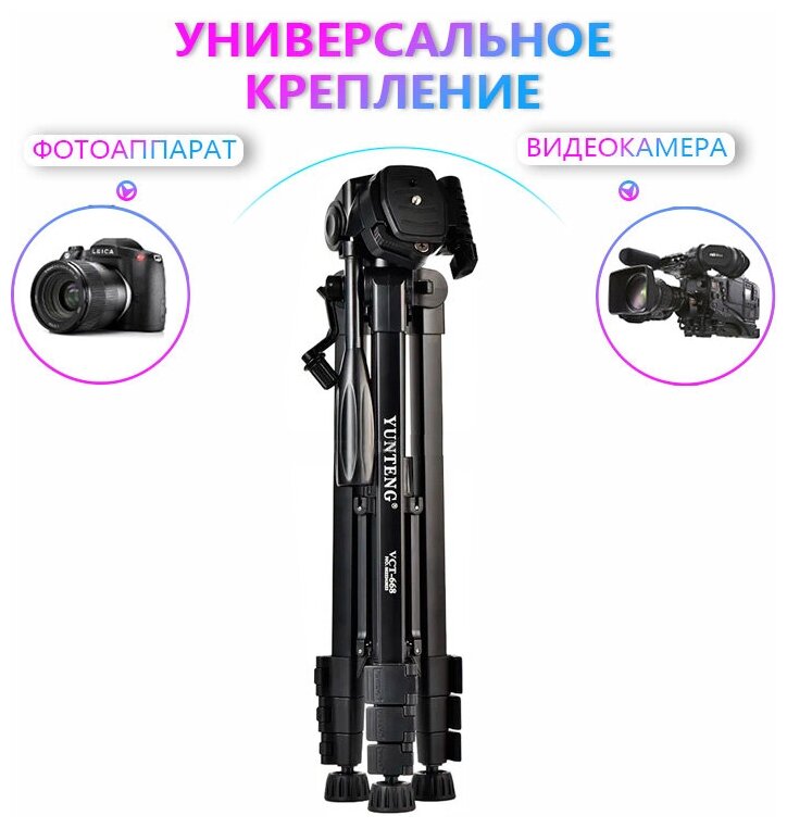 Трипод-штатив YUNTENG VCT-668, напольный для фото/видеокамер, 460-1480мм, черный