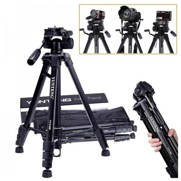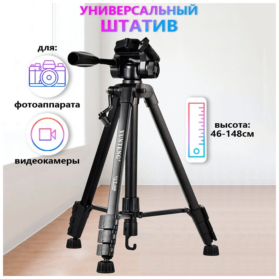 Трипод штатив YUNTENG VCT-668, напольный для фото/видеокамер, 460-1480мм, черный