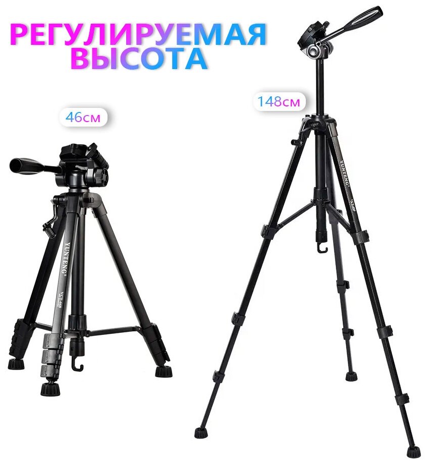 Трипод YUNTENG VCT-668, напольный для фото/видеокамер, 460-1480мм, черный